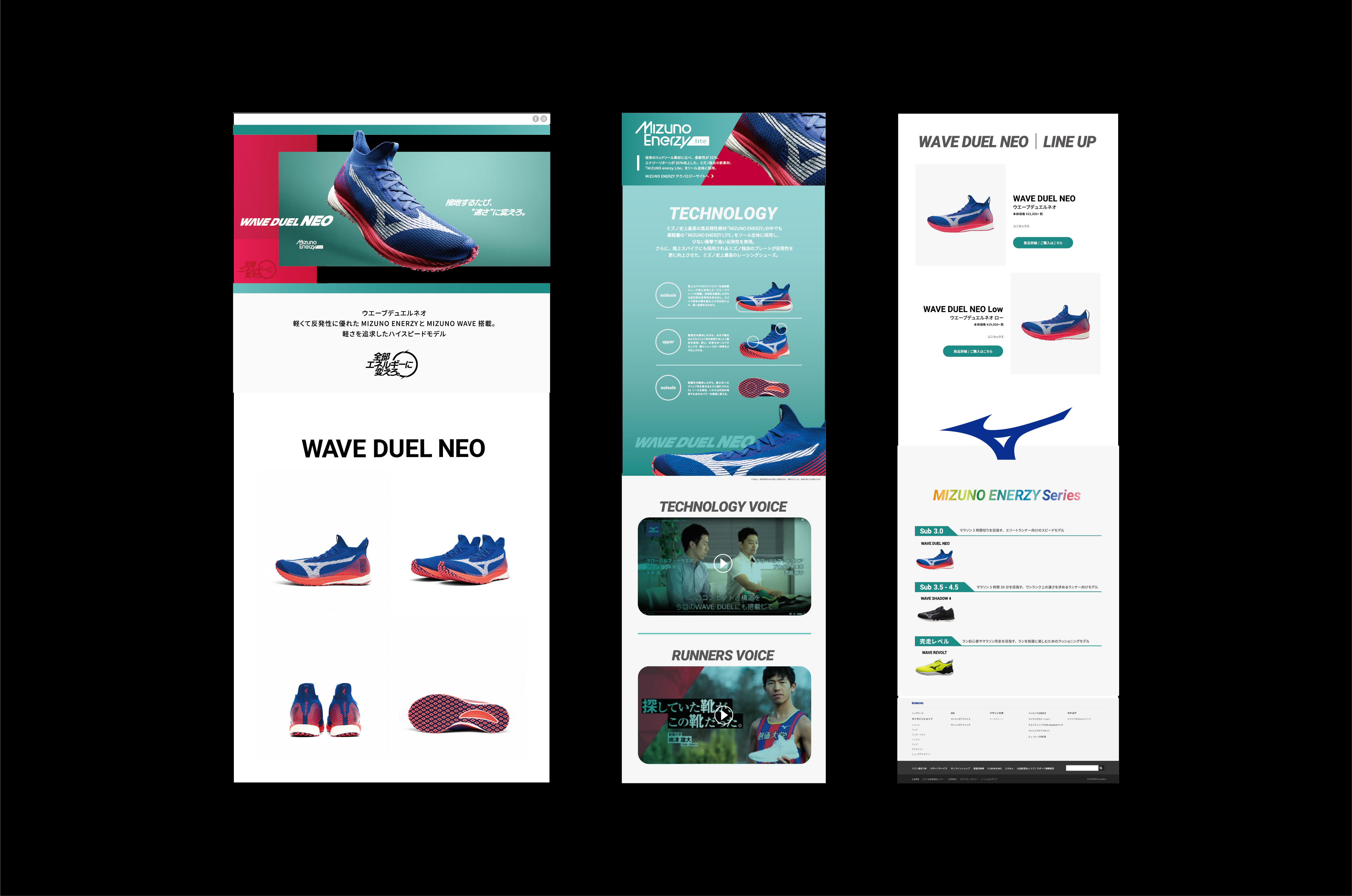 Mizuno Runningが、ランの常識をアップデートする。 世界のトップアスリートを支え、日本のスポーツ界をけん引してきたミズノが、新たなテクノロジーを搭載し、ランニング体験そのものを進化させることを伝える特設コンテンツサイトを企画制作。 編集長にランニング人気メディア編集長を迎え多角的に紐解き、開発秘話やアスリートの声、有識者との座談会などを通して、「ミズノランニング」がもたらす新たな価値を発信し 新商品への納得感を醸成し、商品購入の検討意識を醸成。